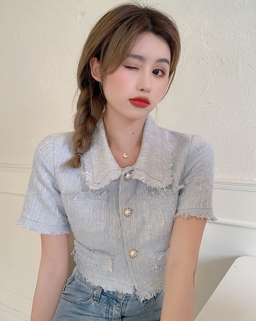 The short-sleeve top features a stylish collar that adds a touch of sophistication, making it easy to dress up or down depending on the occasion. Meanwhile, the high-waisted skirt not only accentuates your waist but also offers versatility in styling, allowing you to mix and match with different tops in your wardrobe.